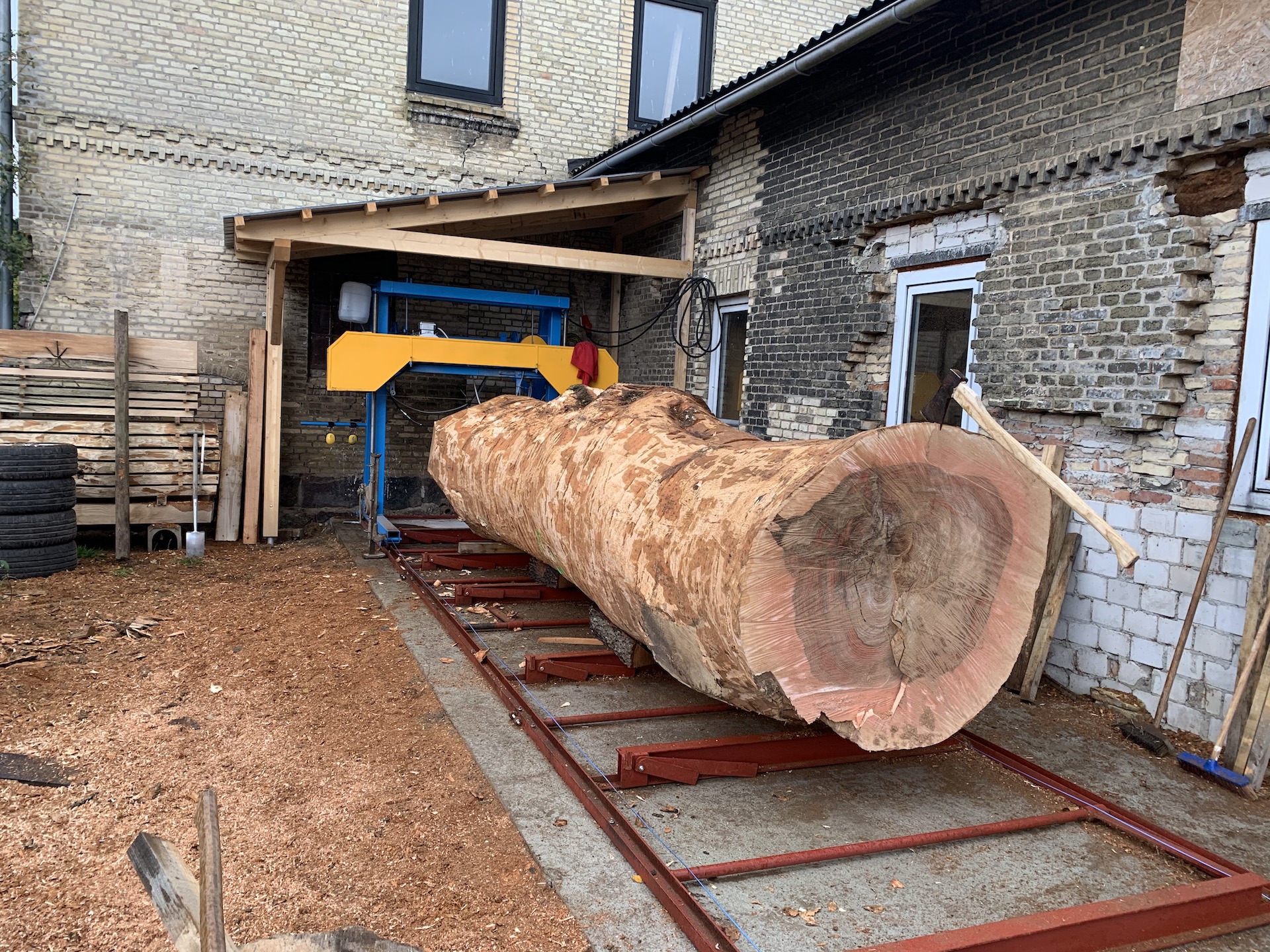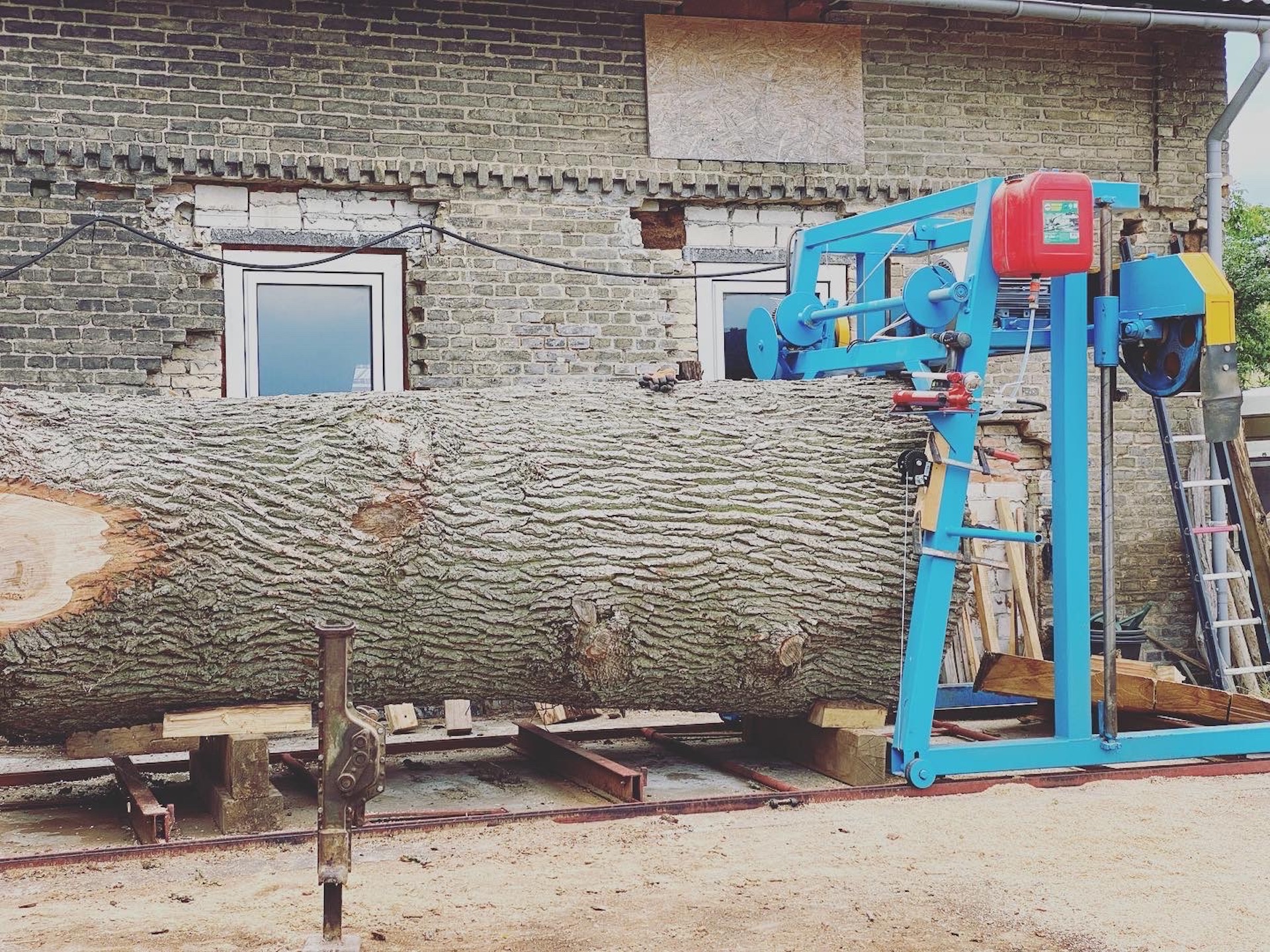 Speziell für unsere Baumriesen haben wir eine weitere Blockbandsäge angeschafft, womit Stämme bis zu einer Länge von knapp 8m und einem Durchmesser von 140cm aufgetrennt werden können.